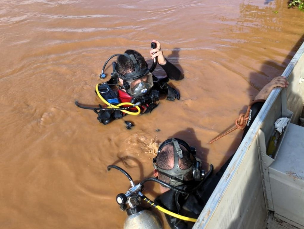 O barco da vítima foi encontrado por um pescador, preso em galhadas, com pertences pessoais, o que reforçou a suspeita de afogamento. Mergulhadores iniciaram as buscas, mas as condições do rio dificultaram a operação no primeiro dia, devido ao nível elevado da água, à forte correnteza e à grande quantidade de detritos.