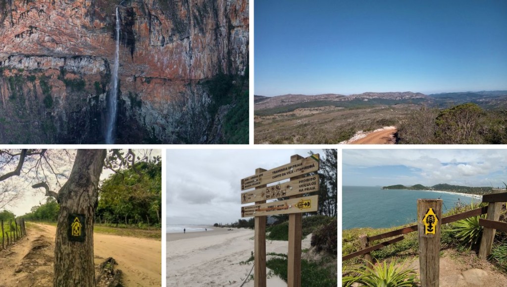 • Trilha Caminhos da Baleia Franca (Santa Catarina): descubra a beleza da costa catarinense! Esse trajeto abrange mais de 50 Km e abarca municípios turísticos de destaque, onde a Mata Atlântica encontra lagoas e praias paradisíacas. As trilhas e caminhos locais guardam histórias e um rico patrimônio, emoldurados por dunas, morros, lagunas, promontórios, ilhas, costões rochosos e banhados.