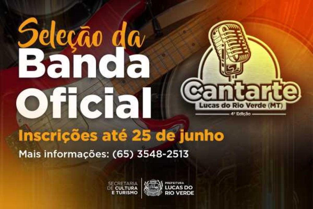 A Prefeitura de Lucas do Rio Verde, por meio da Secretaria de Cultura e Turismo, lançou nesta sexta-feira (13) o edital de seleção para a Banda Oficial do Cantarte 2025. O objetivo é escolher um grupo de músicos do município para acompanhar os candidatos inscritos na 4ª edição do Concurso de Canto, durante as apresentações da semifinal e final.