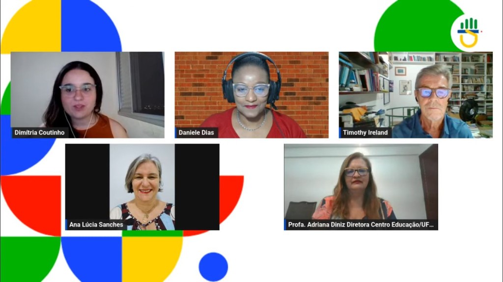 Participantes – Além da representante do MEC, Ana Lúcia Sanches, o painel contou ainda com a presença do coordenador da Cátedra Unesco de EJA, Timothy Ireland; da coordenadora-geral do Programa de Extensão Formação de Educadores da UFPB, Daniele Dias; da coordenadora pedagógica do Programa de Extensão Formação de Educadores da UFPB, Quézia Vila Flor; e da alfabetizadora convidada Mônica Cruz, que falou sobre sua experiência em sala de aula no município de São Sebastião de Lagoa de Roça, na Paraíba. A mediação foi conduzida pela jornalista Dimítria Coutinho.