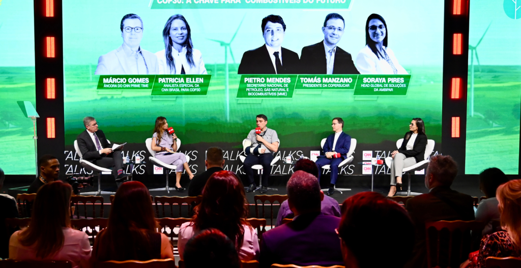 O painel “COP30: A chave para os Combustíveis do Futuro” abordou os desafios e oportunidades para avançar em soluções de baixo carbono na matriz energética. O debate teve a participação de representantes do setor privado, como a Ambipar e a Copersucar, e foi mediado pelos jornalistas Márcio Gomes e Patrícia Ellen.