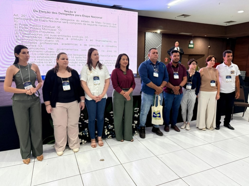 A secretária de Planejamento Urbano e Habitação de Sinop, Scheila Pedroso, foi uma das eleitas delegada titular para o evento nacional. Ela representará a instituição pública. Wladimir Nascimento da União Sinopense das Associações Comunitárias, também foi eleito titular e representará os movimentos sociais do estado. Alexandra Berté, coordenadora do setor de Planejamento Estratégico da Secretaria de Planejamento Urbano e Habitação foi eleita suplente de delegada do setor público.