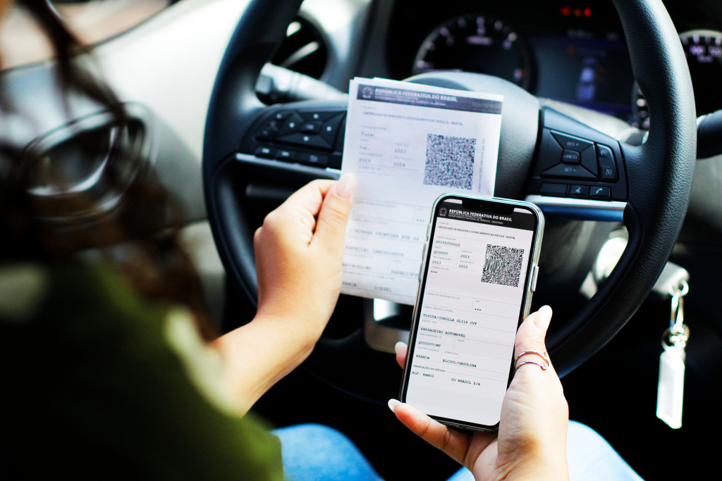 Após pagar a taxa, o Certificado de Registro e Licenciamento de Veículo (CRLV-e) pode ser emitido em formato digital (arquivo em PDF) ou impresso em papel comum.