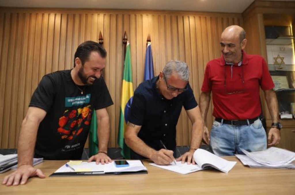 O prefeito Alei Fernandes assinou, nesta sexta-feira (15 de agosto), o projeto do Loteamento Vale do Lira, na aba Oeste do Bairro Verdes Campos. É este o loteamento que vai ser o endereço das 50 casas que serão construídas para famílias em situação de extrema vulnerabilidade social pela parceria entre o Município e o Estado, via programa SER Família Habitação.