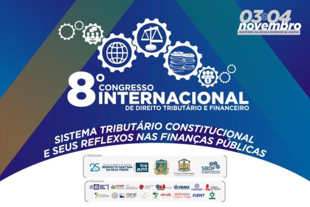 O Tribunal de Contas de Mato Grosso (TCE-MT) e o Tribunal de Justiça do Estado (TJMT) realizam, nos dias 3 e 4 de novembro, no auditório da Escola Superior de Contas do TCE-MT, o 8° Congresso Internacional de Direito Tributário e Financeiro com o objetivo de debater o sistema tributário constitucional e seus reflexos nas finanças públicas. Clique aqui para se inscrever.